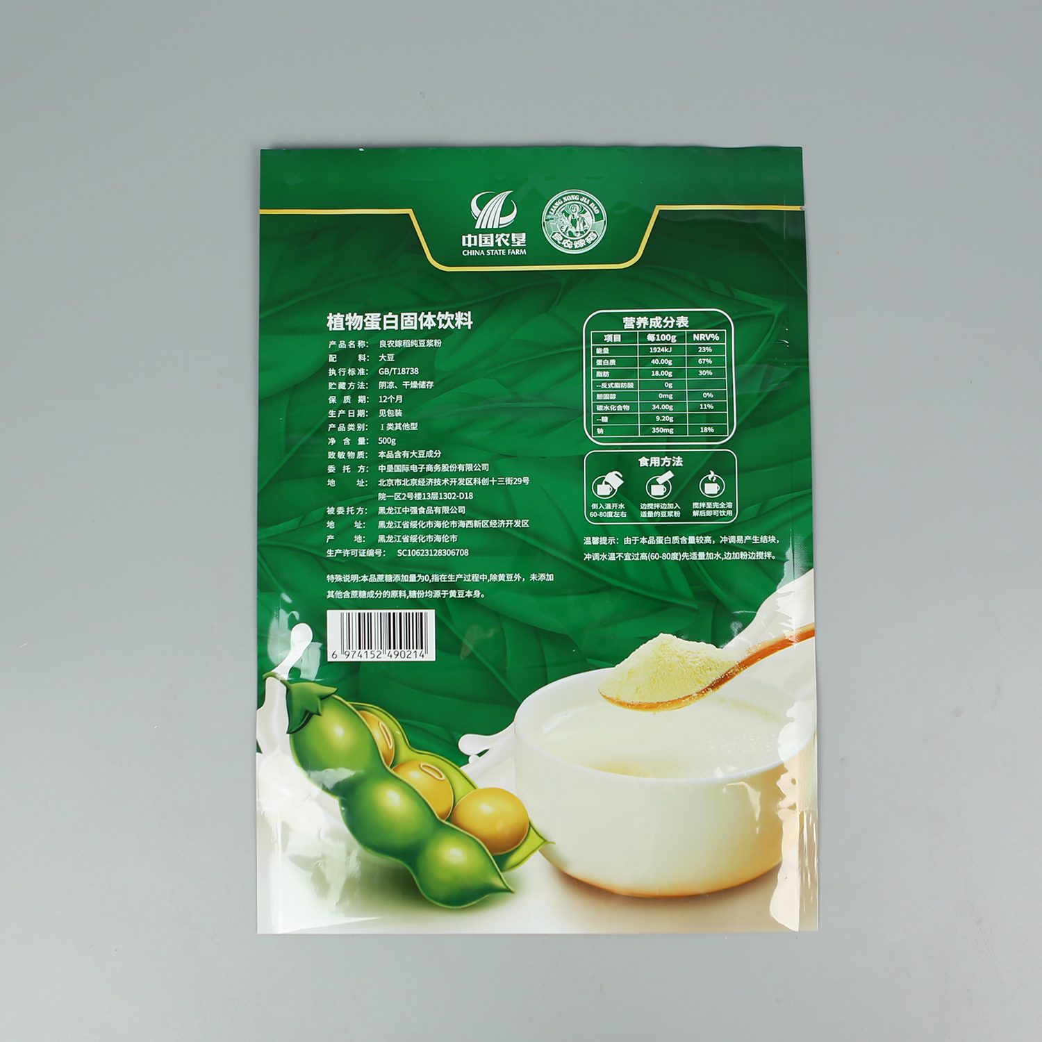 產(chǎn)品名稱:500g純豆?jié){粉+亮面塑料復合+三邊封
