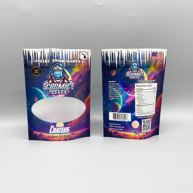 凍干糖果袋采用了時(shí)尚的鐳射膜材質(zhì),結(jié)合自立袋設(shè)計(jì)及獨(dú)特的開(kāi)窗特性,為現(xiàn)代消費(fèi)者提供了一種既實(shí)用又具吸引力的包裝方案。