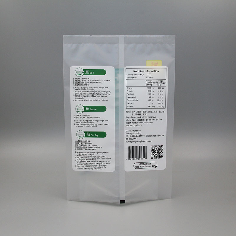 本產(chǎn)品為啞光塑料復(fù)合冷凍背封袋,簡單印刷,大面積透明包裝,體現(xiàn)出簡潔的特點,同時降低印刷成本,為公司帶來更高的利潤空間。背封袋結(jié)合了四邊封袋多列同時包裝速度快和三邊封袋空間率用率高的優(yōu)點,相對四邊封袋,在不影響生產(chǎn)速度的同時能夠減少約40%包材用量,具有非常明顯的包裝成本優(yōu)勢。巨人包裝選擇耐低溫材料,強韌性好,阻隔優(yōu),耐寒、耐油,抗封口污染性好,密閉性高。