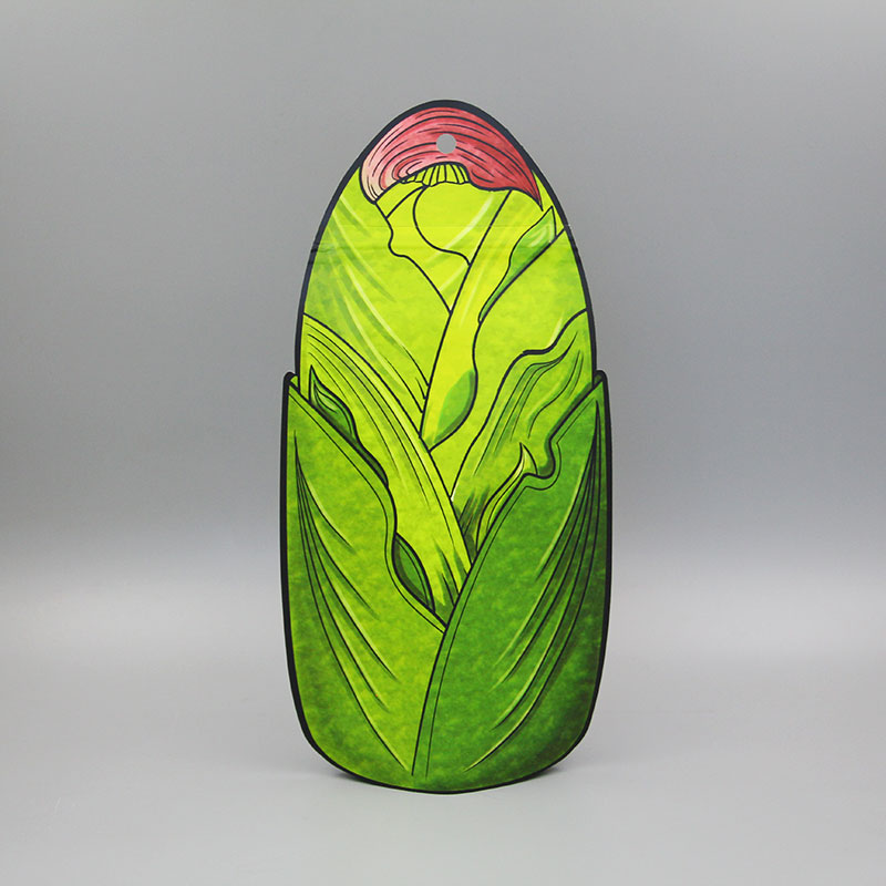 本產(chǎn)品為啞光油白牛皮紙揩開窗異形袋,牛皮紙密封性好,平整度高,手感更加細(xì)膩,成袋挺括,白牛皮紙底色是白色,不會(huì)與其他顏色疊加,因此印刷效果好。袋子設(shè)計(jì)成玉米的形狀,具有新穎、簡(jiǎn)單、明確、好識(shí)別、凸顯品牌形象等特點(diǎn)。拉鏈設(shè)置在背面,保證正面圖案完整。