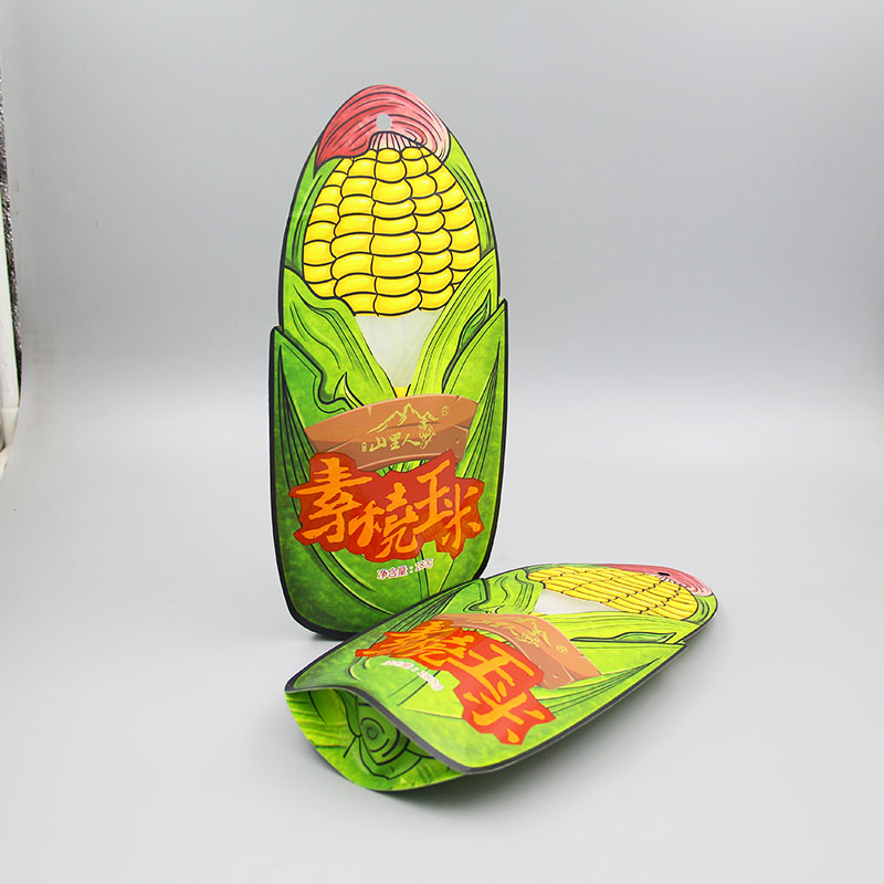 本產(chǎn)品為啞光油白牛皮紙揩開窗 異形袋 ,牛皮紙密封性好,平整度高,手感更加細(xì)膩,成袋挺括,白牛皮紙底色是白色,不會(huì)與其他顏色疊加,因此印刷效果好。袋子設(shè)計(jì)成玉米的形