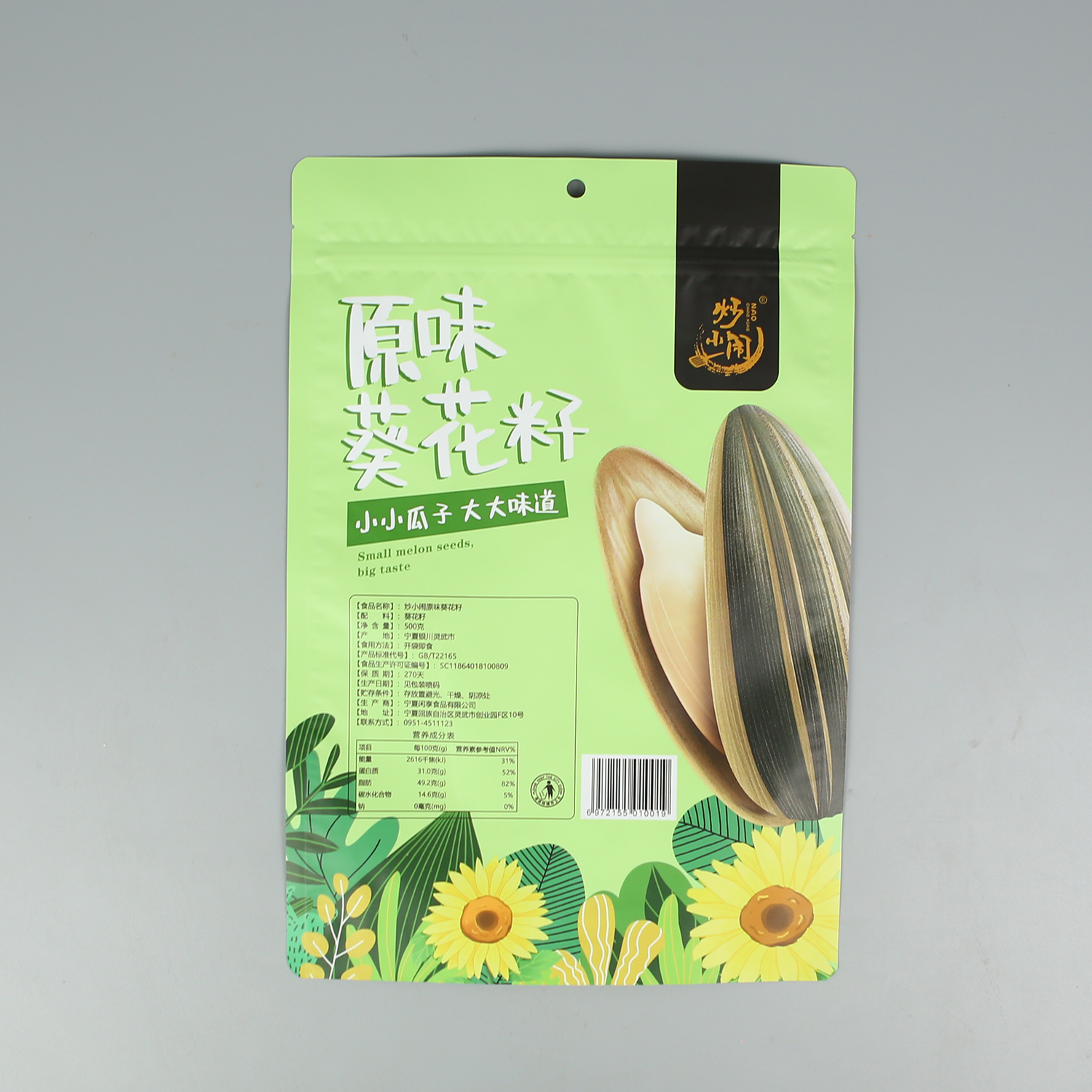 產(chǎn)品名稱:500g原味瓜子+啞光鋁箔抽真空+三邊封帶拉鏈