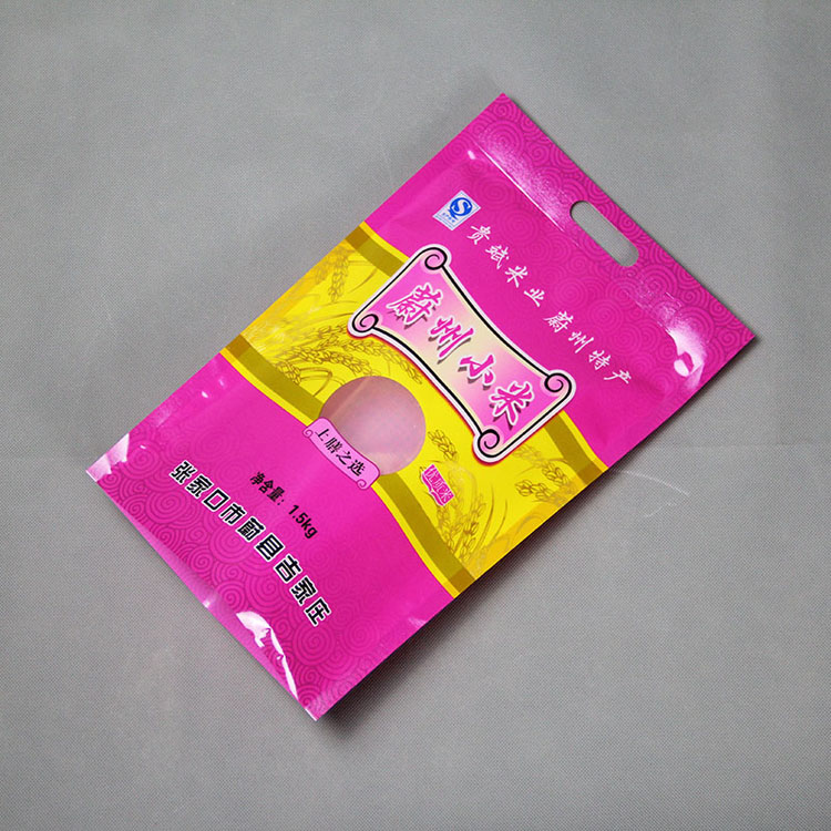 大米小米包裝袋有時(shí)候作為直接包裝,因此需要做成真空袋,又稱貼身防潮袋、鋁箔袋、鋁塑復(fù)合袋,其材質(zhì)一般為PET/AL/CPE或PET/NY/AL/CPE.其中PET——印刷效果好,NY——透氧性低,AL——阻隔性強(qiáng)、不透光,CPE——包裝內(nèi)層。膠水:水溶性膠水(更加衛(wèi)生、環(huán)保、無溶劑殘留量)此產(chǎn)品具有良好的防靜電、隔氧、屏蔽、防潮、遮光功能及優(yōu)良的熱封性。