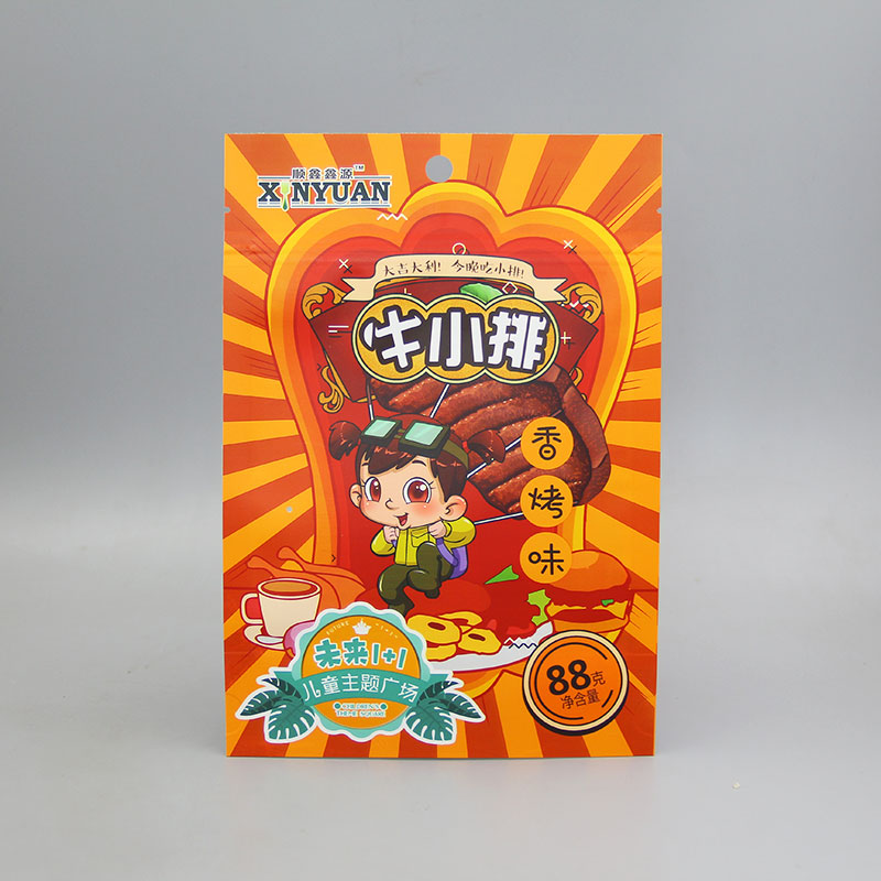 這是我們常見(jiàn)肉干類(lèi)零食的包裝袋,由巨人紙塑包裝公司設(shè)計(jì)生產(chǎn),雖然按照使用角度來(lái)說(shuō)它只是名為“牛小排”的牛肉干包裝袋,但在我們紙塑包裝行業(yè),它也可以稱(chēng)為牛皮紙開(kāi)窗袋、復(fù)合自立袋、自封包裝袋等等。