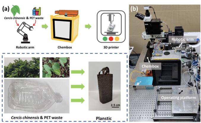 為了幫助世界擺脫微塑料飲食,香港團隊開發(fā)了一種低成本的植物注入塑料,利用天然酶更有效地降解微小的聚合物顆粒。綽號Planstic,研究人員的新型材料是通過紫荊葉和磨碎的PET混合制成的,這些材料在“Chembox”中混合、塑化并可以打印。