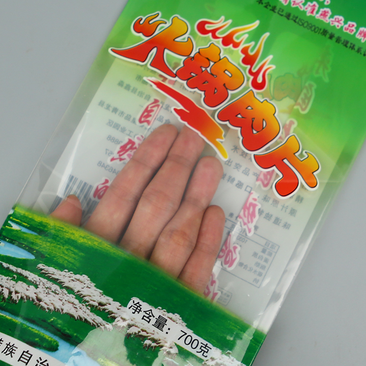 產(chǎn)品名稱:700g火鍋肉片+亮面塑料復(fù)合+背封帶折邊