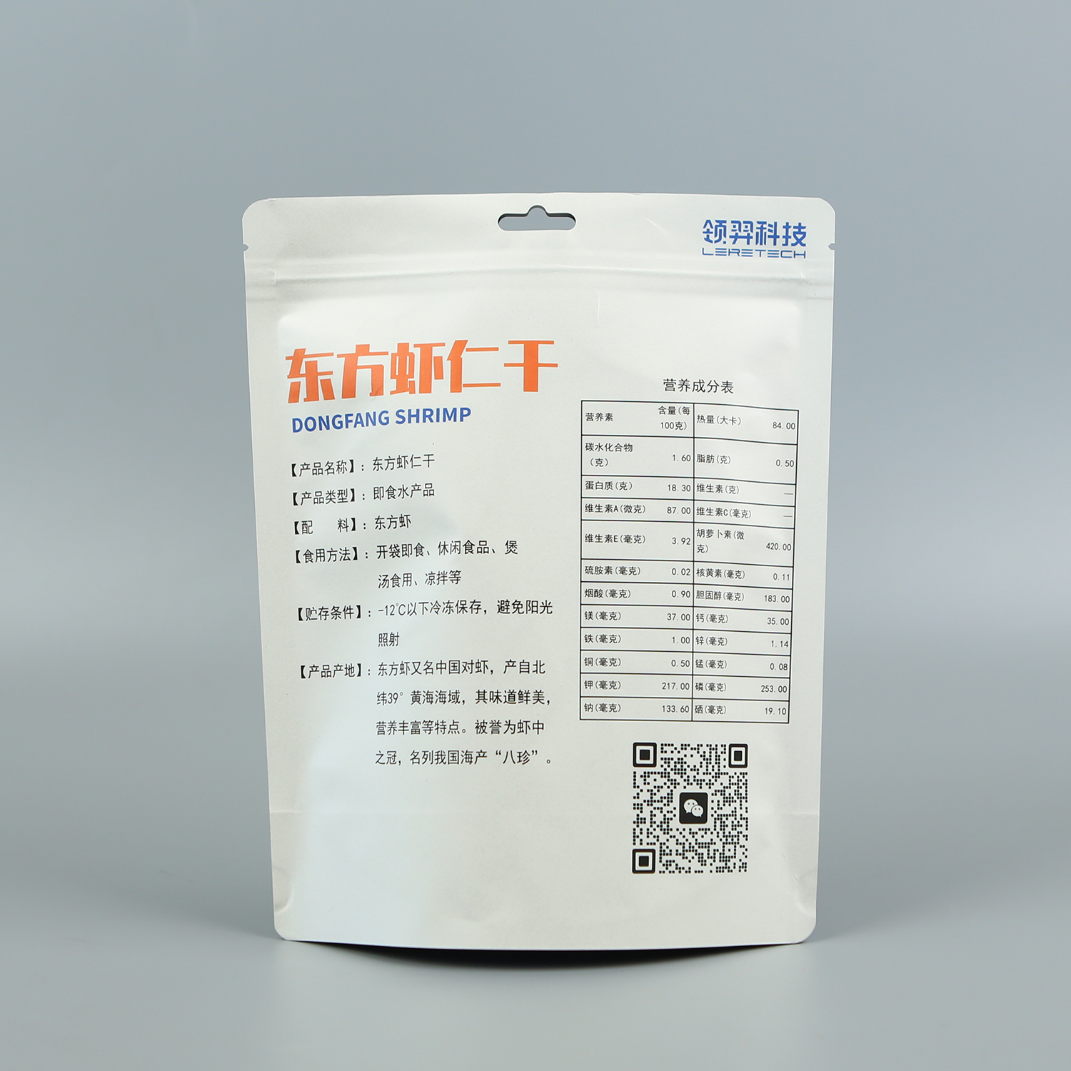 產(chǎn)品名稱(chēng):東方蝦仁干+白牛皮紙復(fù)合+自立拉鏈袋