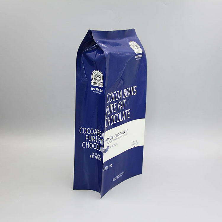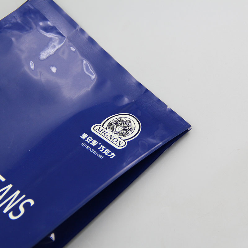 本產(chǎn)品為亮面鍍鋁 四邊封包裝袋 ,鍍鋁層具有一定的遮光作用,阻隔性較強,巧克力一般會使用鋁箔包裝。亮面更能體現(xiàn)鋁箔的光澤感,二者適配性更高。四邊封從包裝材料和生產(chǎn)設